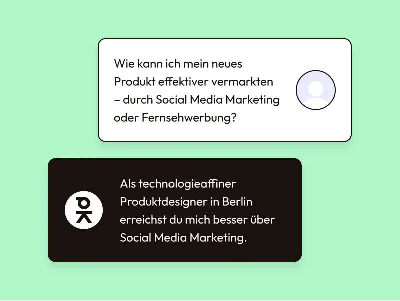 Führe Gespräche mit deinen generierten Personas, um Marketingfragen zu klären und direktes, interaktives Feedback zu erhalten, das deine Strategien schärft und anpasst.